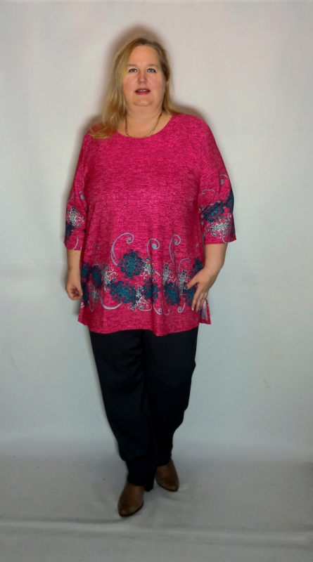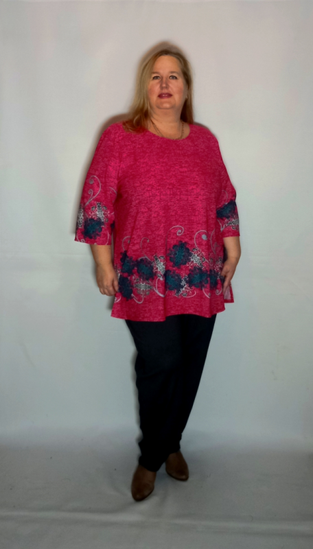 Симпатичная, комфортная туника выполнена из эластичного трикотажного полотна средней плотности.