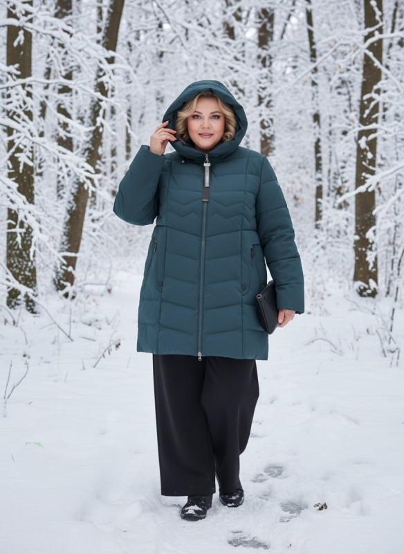 Зимняя куртка длинная больших размеров с капюшоном станет вашим идеальным выбором для холодных дней. Она подойдет, как для прогулки так и для похода на природу.
