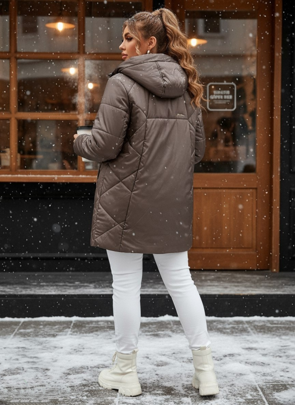 Стильная, теплая, но при этом не тяжелая, зимняя куртка выполнена из плащевой ткани с неброским металлическим оттенком. Утеплитель верблюжья шерсть.