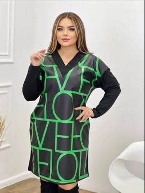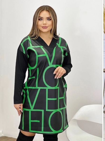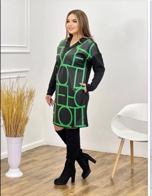 СТильное платье-туника выполнено из  сочетания гладкого плотного трикотажа ( спинка и рукав) и трикотаж по д кожу.  Однотонный трикотаж  умеренно эластинчый, хорошо скрывает шероховатости фигуры. Трикотаж под кожу тянется слабее, но тянется